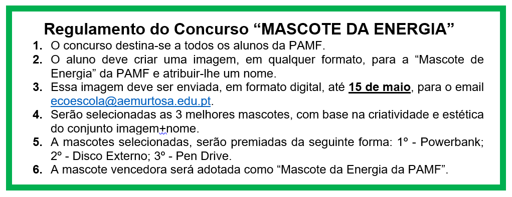 - A mascote vencedora será adotada como “Mascote da Energia da PAMF”.